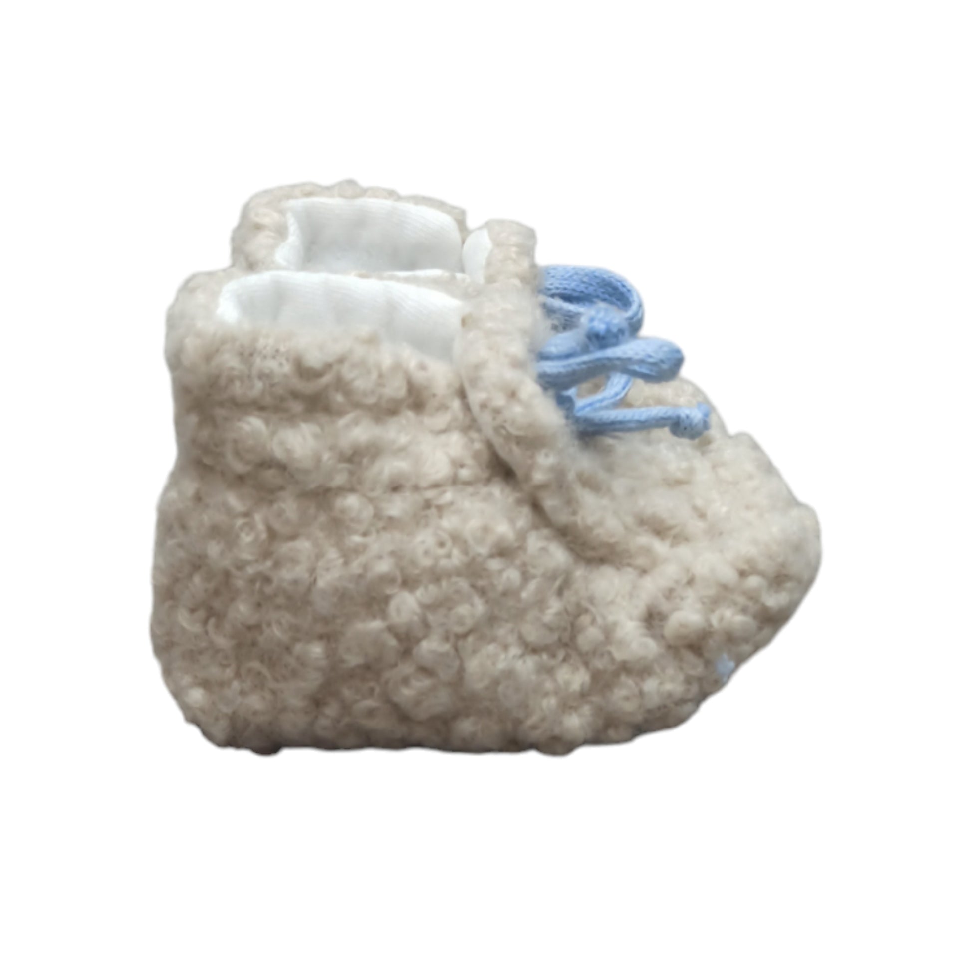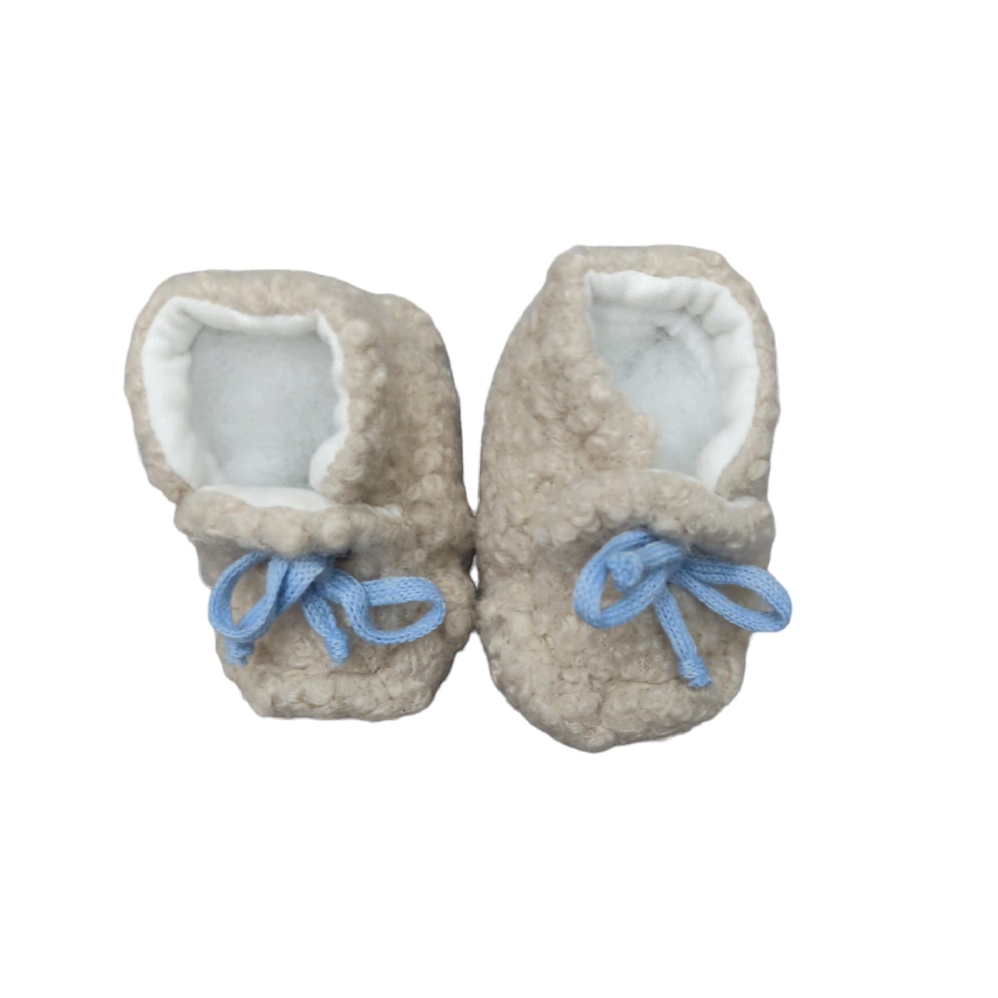 Coppia di calzini a scarpetta morbidi in pelliccia con coulisse regolabile, misura nascita.