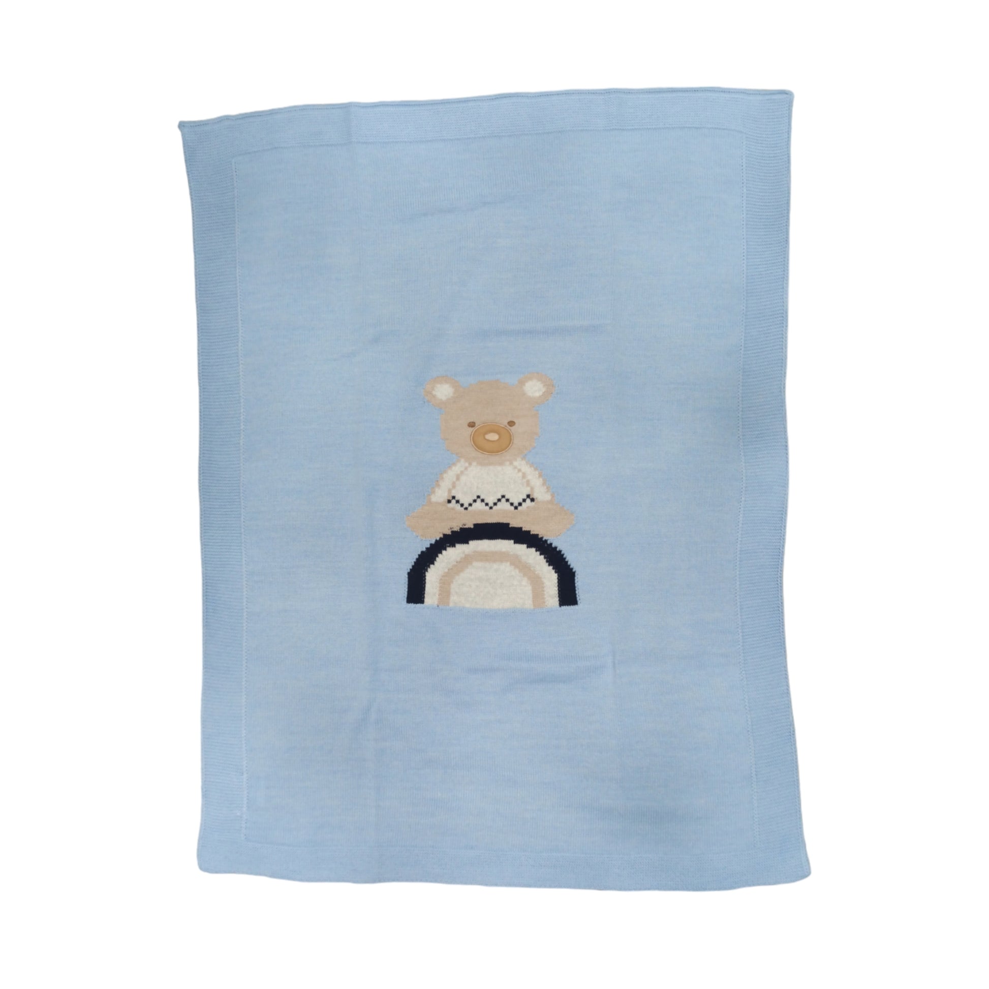 Coperta in lana doppia, con orsetto ricamato al centro e bordo rimagliato, coordinabile con tutti gli articoli del tema.