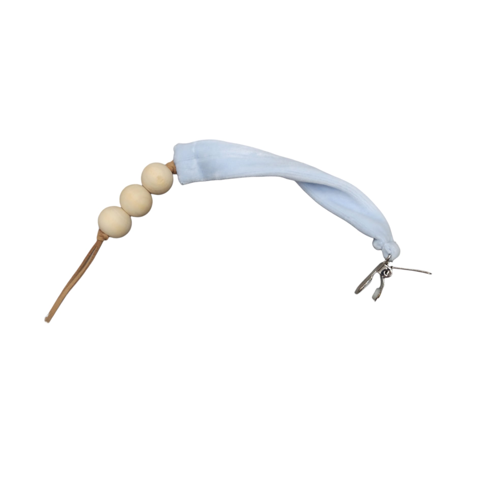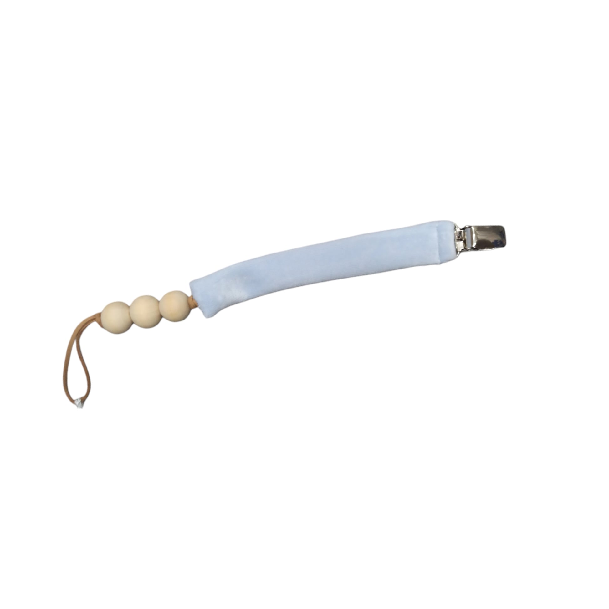 Portaciuccio in ciniglia con clip in metallo e finitura in legno e caucciù