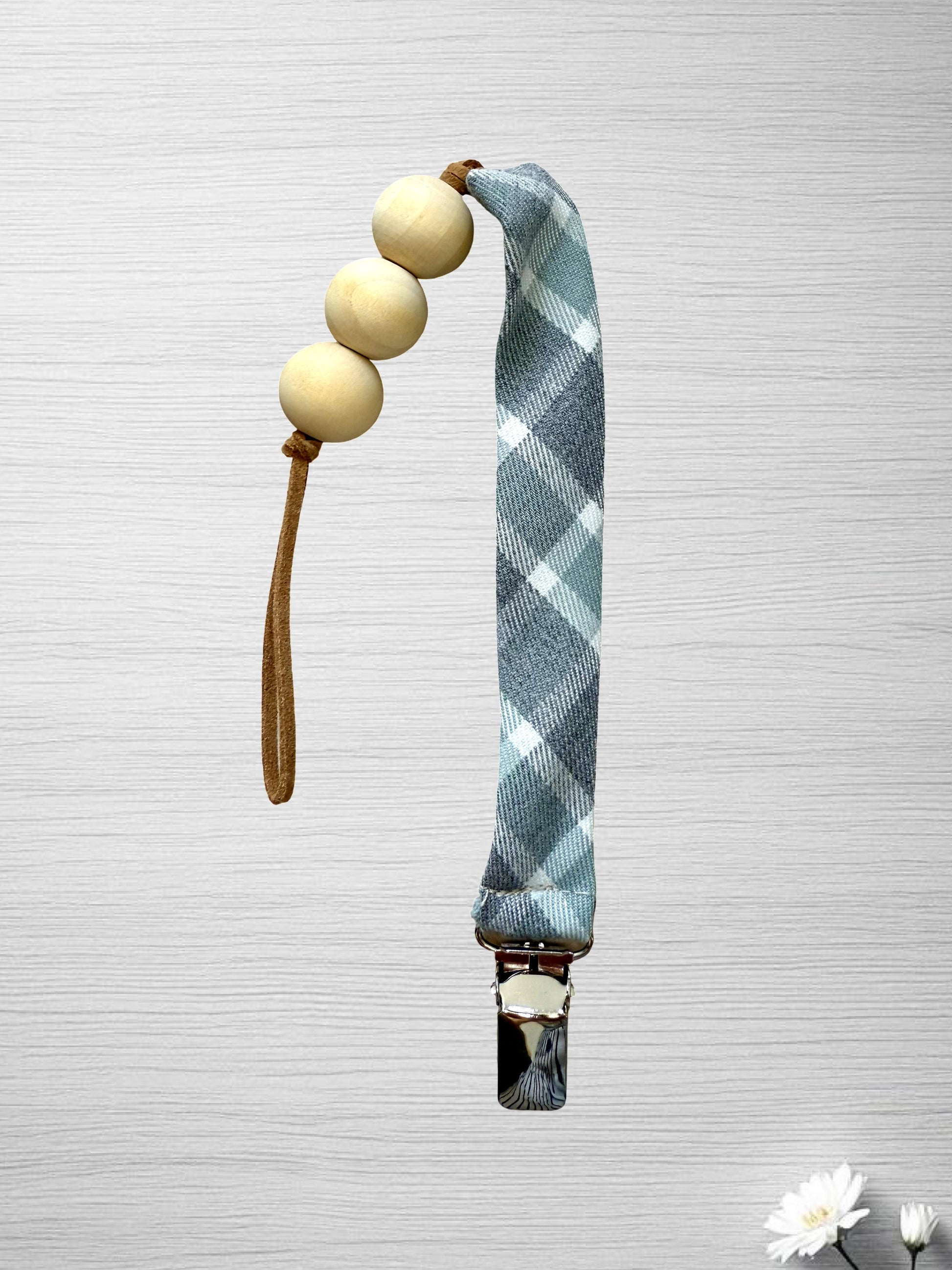 Portaciuccio in ciniglia con clip in metallo e finitura in legno e caucciù