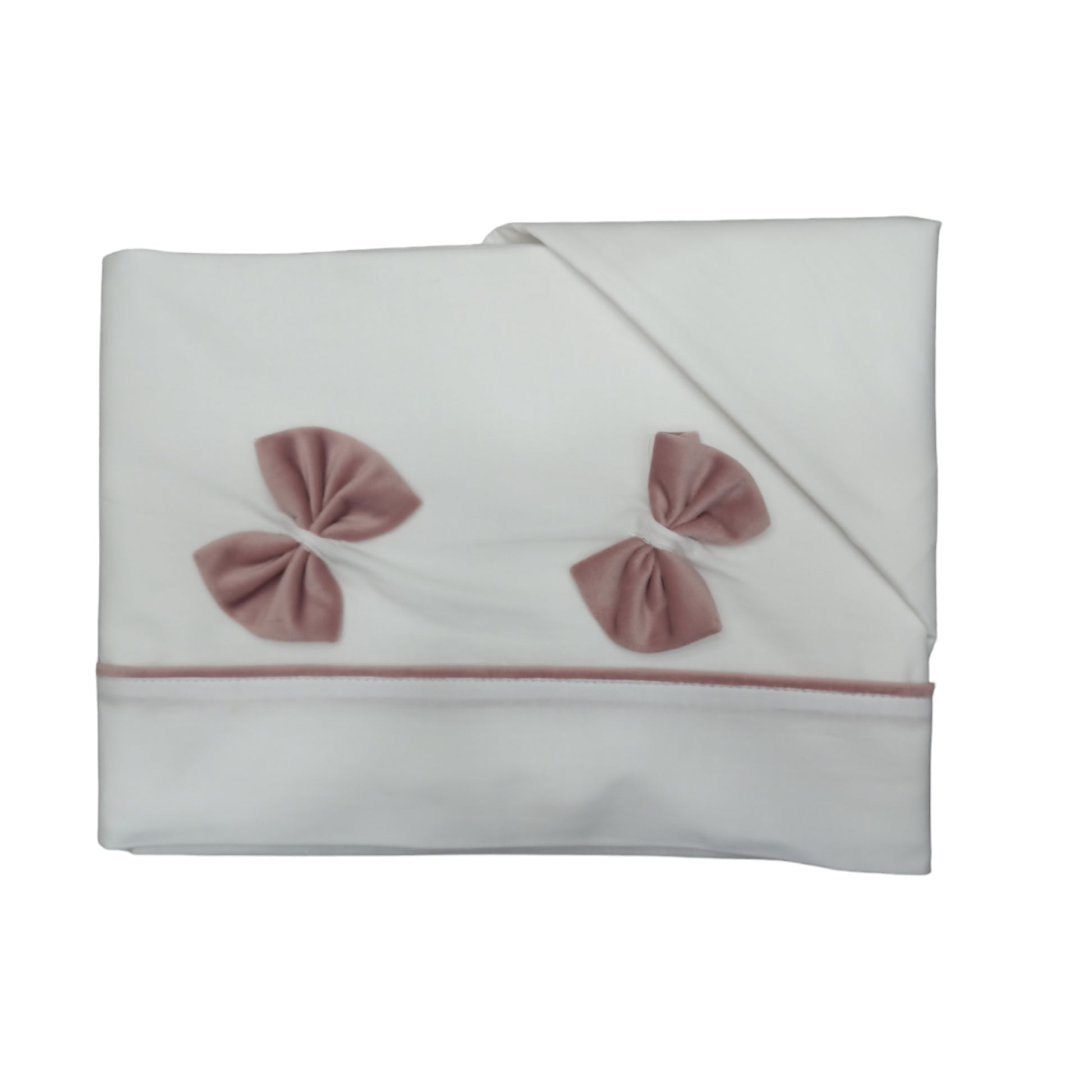 Set lenzuola cotone con applicazione di orsetto ricamato sulla piega, composto da sopra, sotto sempre teso con elastici perimetrali e federa.